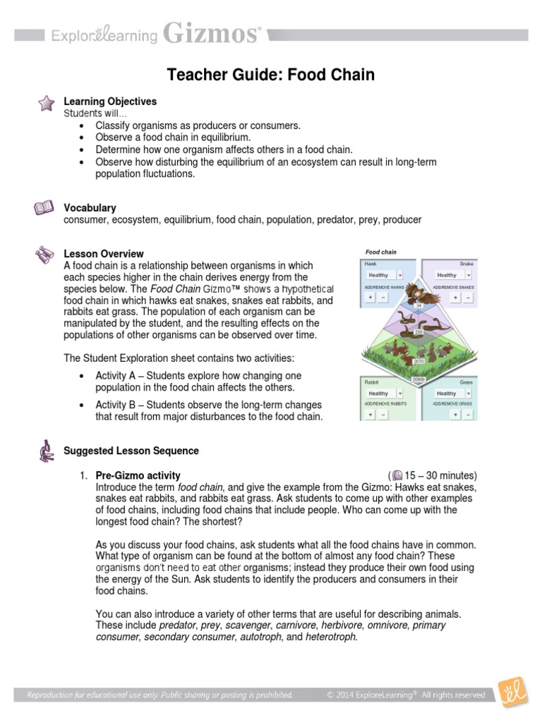 Lesson Info Food Chain Gizmo Explorelearning Food Chain 4th Grade Science Science Resources from i.pinimg.com Food chain in this ecosystem consisting of hawks, snakes, rabbits and grass, the population of each species can be studied as part of a food chain. Download free explore learning gizmo food chain answer key to better service a growing roster of clients Maybe you would like to learn more about one of these? Producers are organisms that do not need to eat other organisms to obtain energy. In this simulation, the hawks eat snakes, the snakes eat rabbits, and the rabbits eat grass. The food chain gizmo shows a food chain with hawks, snakes, rabbits, and grass. The food chain gizmo™ shows a food chain with hawks, snakes, rabbits, and grass. Check spelling or type a new query.